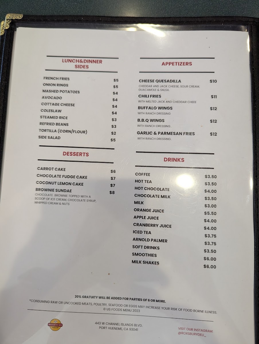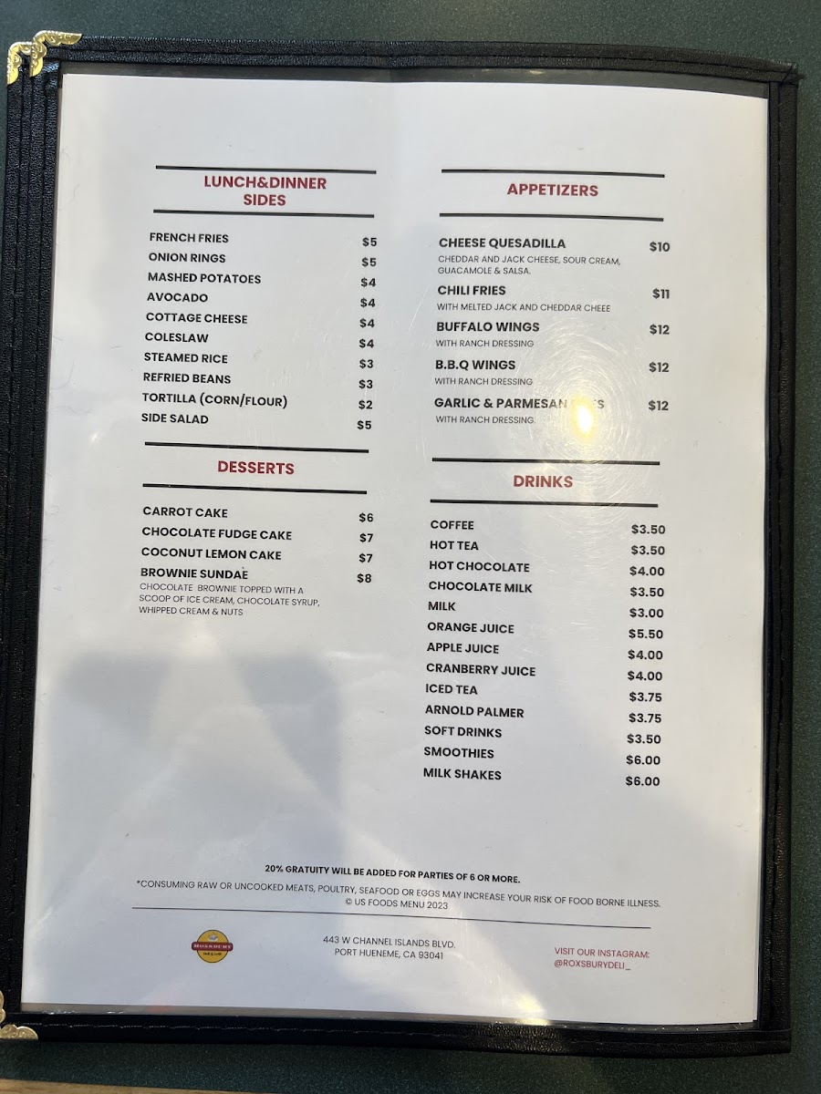 Welcome to Roxsbury Deli & Grill, a delightful gem situated on Channel Islands Boulevard in Port Hueneme, California. This family-owned restaurant has become a local favorite, offering an inviting dining atmosphere that feels both warm and welcoming.